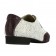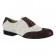 Tangoschuh in weißer Paisleymusterung mit pflaumenfarbener Kappe und Ferse. Ganz leichte und bequem!!